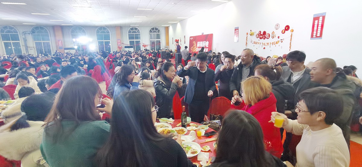 活動當(dāng)日正值2022年臘八節(jié),代表新年和圓滿的團(tuán)拜宴自然必不可少。下午6點(diǎn),在前鋒西區(qū)產(chǎn)業(yè)園食堂,舉辦了2022前鋒虎年團(tuán)圓家宴。所有參會領(lǐng)導(dǎo)、經(jīng)銷商代表及銷售團(tuán)隊(duì)參與了活動。